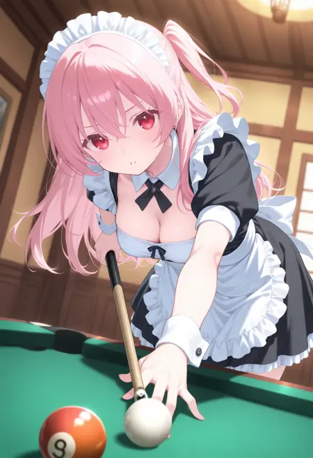 비리어드에서 공을 치려는 자세를 취하게 하는 LoRA입니다.