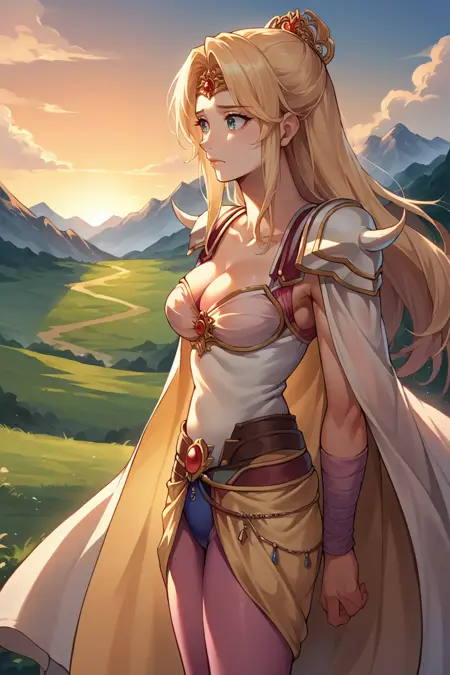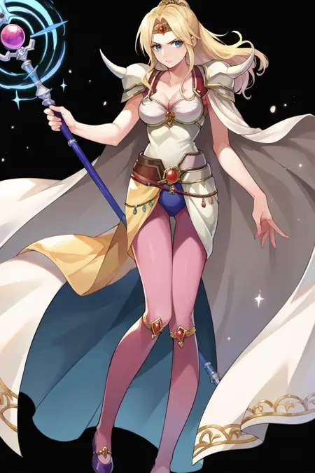 来自《最终幻想IV》的罗莎·乔安娜·法雷尔,基于Pony Diffusion V6 XL训练,测试强度为0.8-1.0。