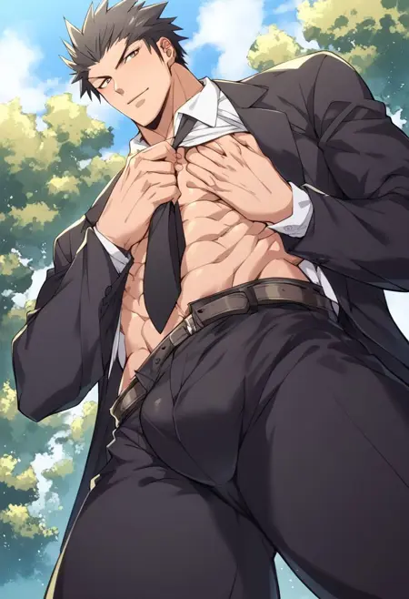 Add tags related to the male anatomy (abs, pecs, penis, etc.), vice versa