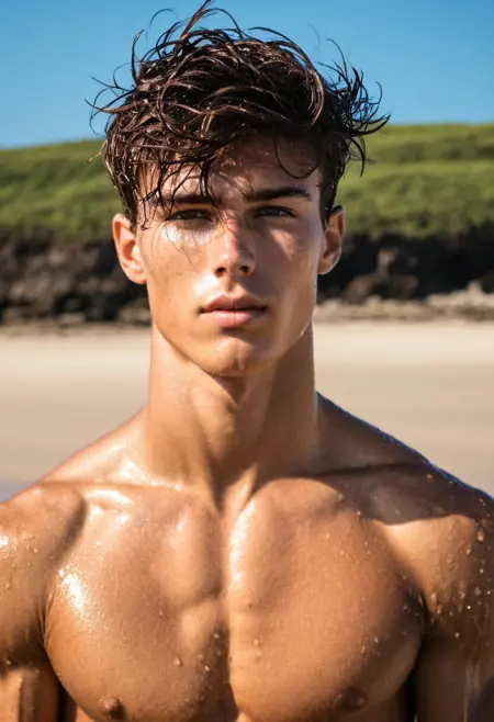 写実性に関連するキーワードをプロンプトに追加しない場合、やや写実性が低くなりますが、よりハンサムな顔立ちが生成されます。お好みで選んでください :-)