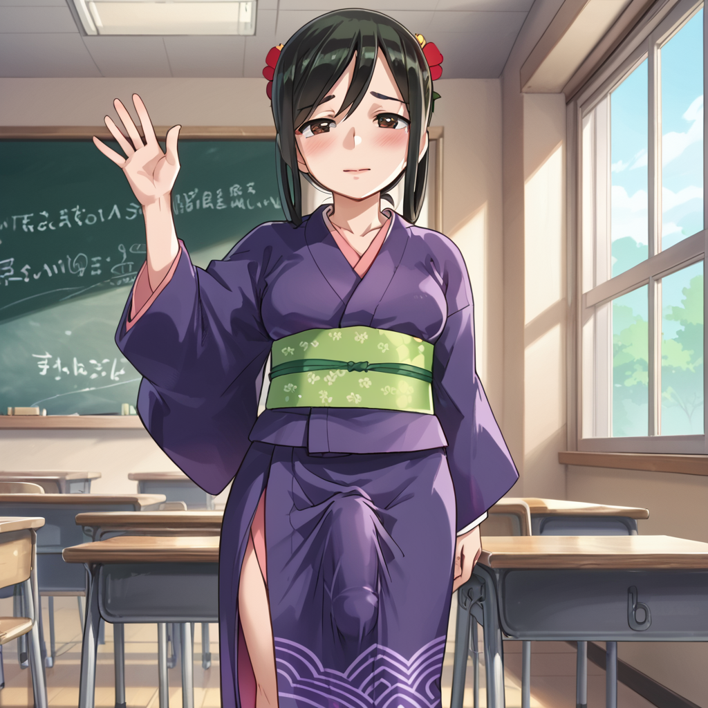 『Futabu』シリーズの温泉宿の女将、戦神千恵のLoRA。現場トレーナーで学習済み。