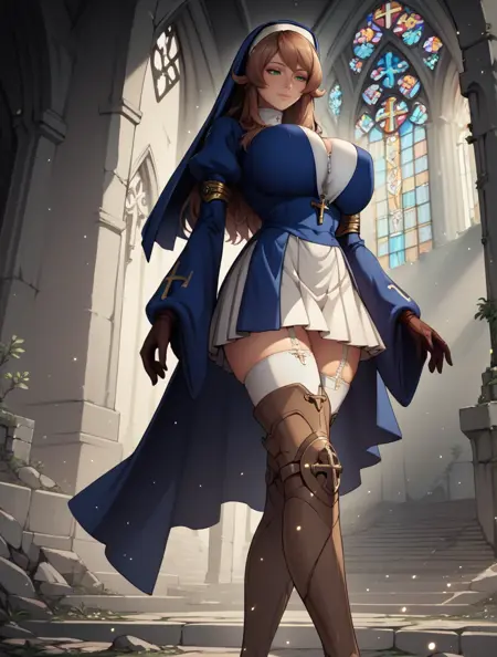 这里没什么好补充的!她的服装还原得非常好,但如果你想要生成她的法杖,要小心一点,因为所有武器通常都有点不稳定。除此之外,我觉得她的形象相当多样化,修女装扮也被Pony轻松识别出来了,所以没什么问题。不过还是告诉我你的想法吧 :)