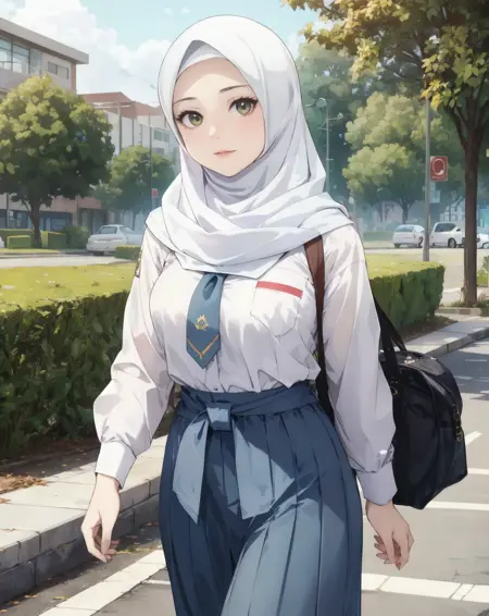 こんにちは!このLoRAは、インドネシアの高校制服(ヒジャブ版)を基に、半リアルな画像を生成することを目的としています。このモデルはアニメスタイルのモデルにも適用可能です。アップロードされた画像を参考に、サンプルプロンプトをご確認ください。