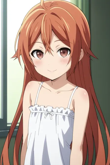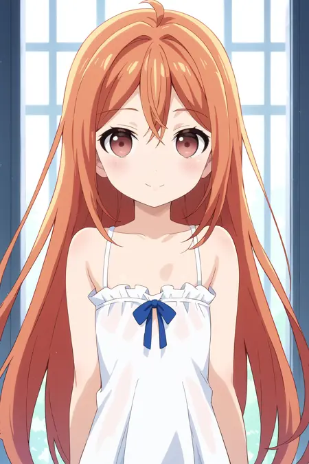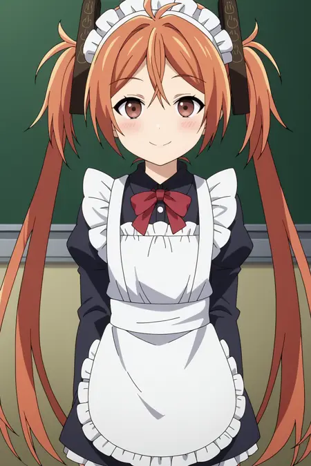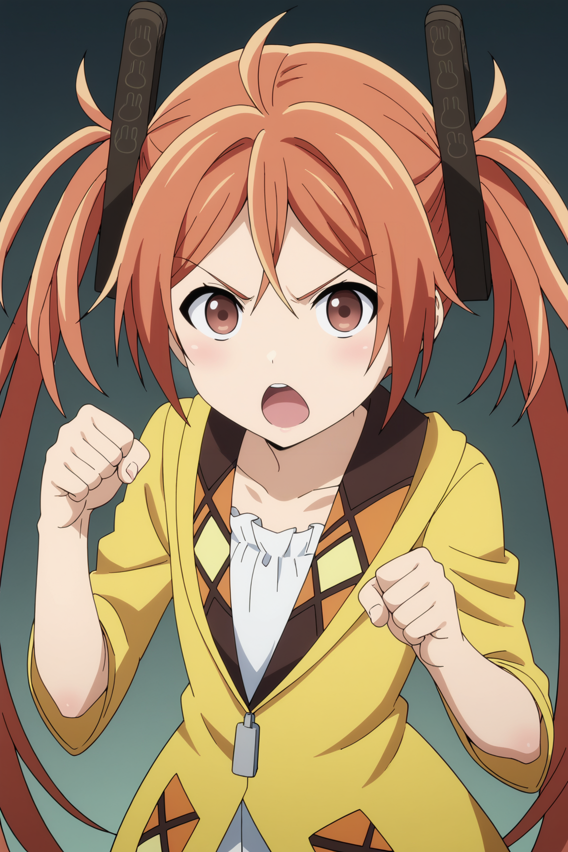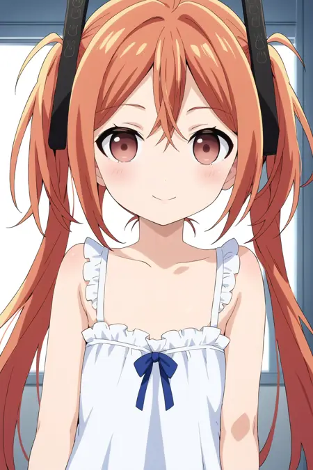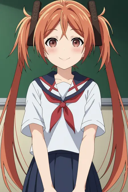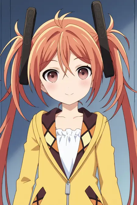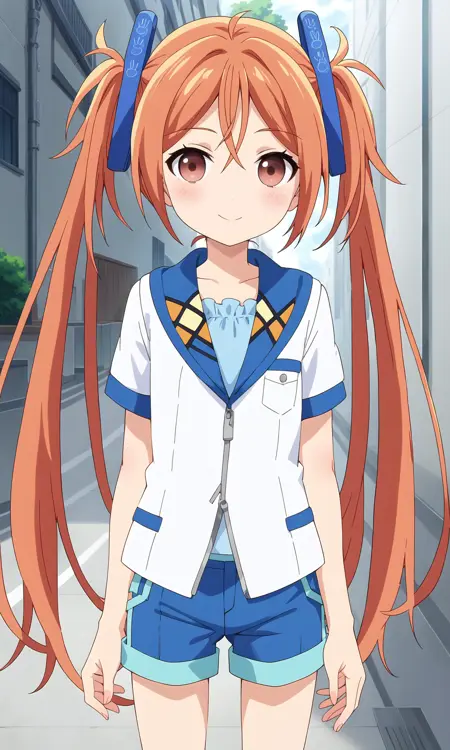 1girl, aihara enju, black bullet, orange hair, long hair, flat chest, twintails, hair ornament,