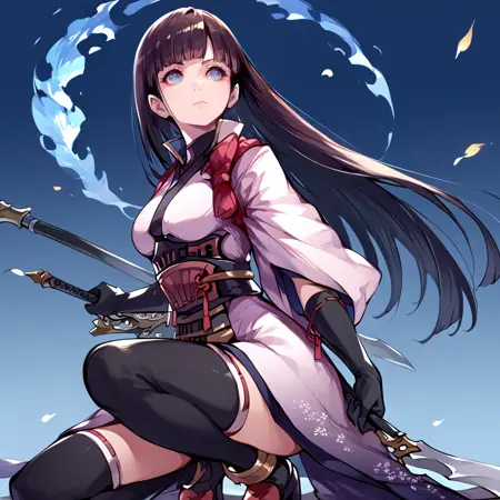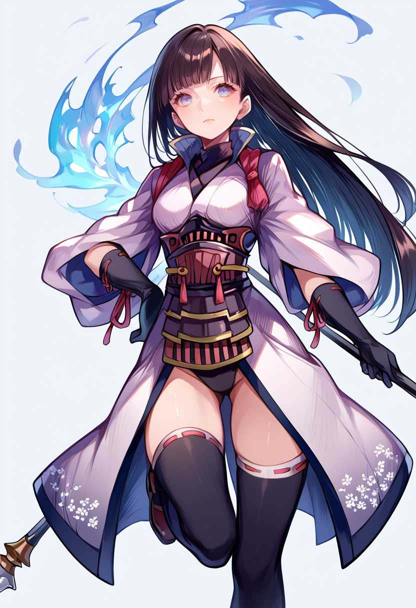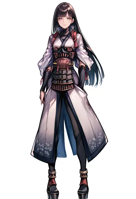 标签(服装):白色日式服装,黑色过膝长筒袜,黑色手套,黑色厚底鞋,胸甲水晶,