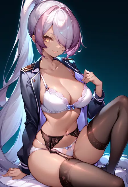 태그(기타, 태그에 없지만 결과 조정 가능): 한쪽 눈 가림, 눈 사이 머리카락, 높은 단발머리