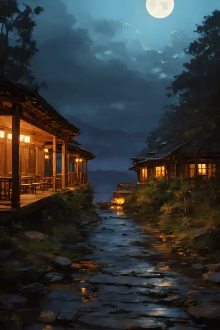 紹介:月下の幽静なシーン用LoRAモデル、主に詩的で静謐な夜景の生成を制御するために使用されます