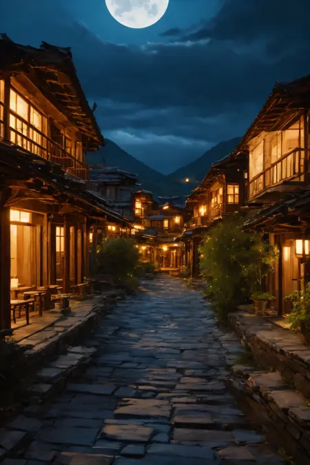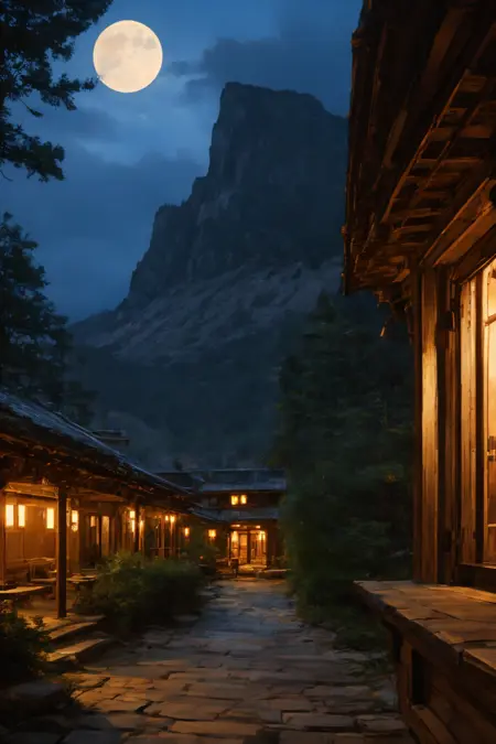 简介:月下幽境场景Lora模型**,主要用于控制生成充满诗意和宁静的夜晚景色**