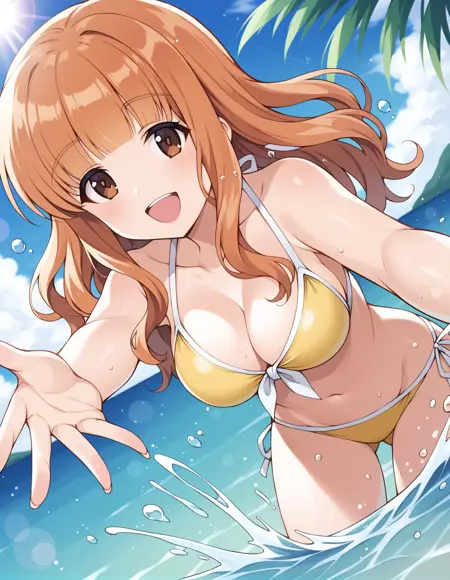 触发词:takebe saori, 1girl, 长发, 橙色头发, 齐刘海, 棕色眼睛