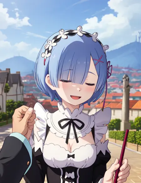 의상 변경을 원하신다면, 단지 'phRem'과 원하는 의상의 프롬프트 단어만 삽입하시면 됩니다 (당신의 ckpt 파일 내에 그 의상이 존재해야 합니다). 옷을 바꾸면서 캐릭터의 특징이 사라졌다고 느끼신다면, blue hair, blue eyes, short hair, maid, hair ornament, hair over one eye, x hair ornament, hair ribbon, pink ribbon 등의 추가 프롬프트를 입력해 특징을 강화하세요.