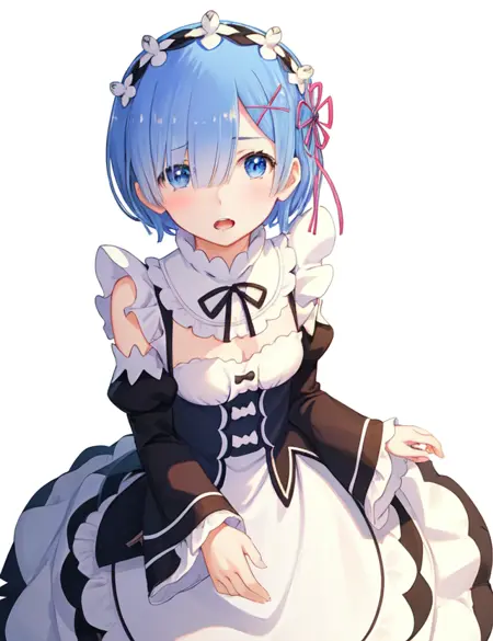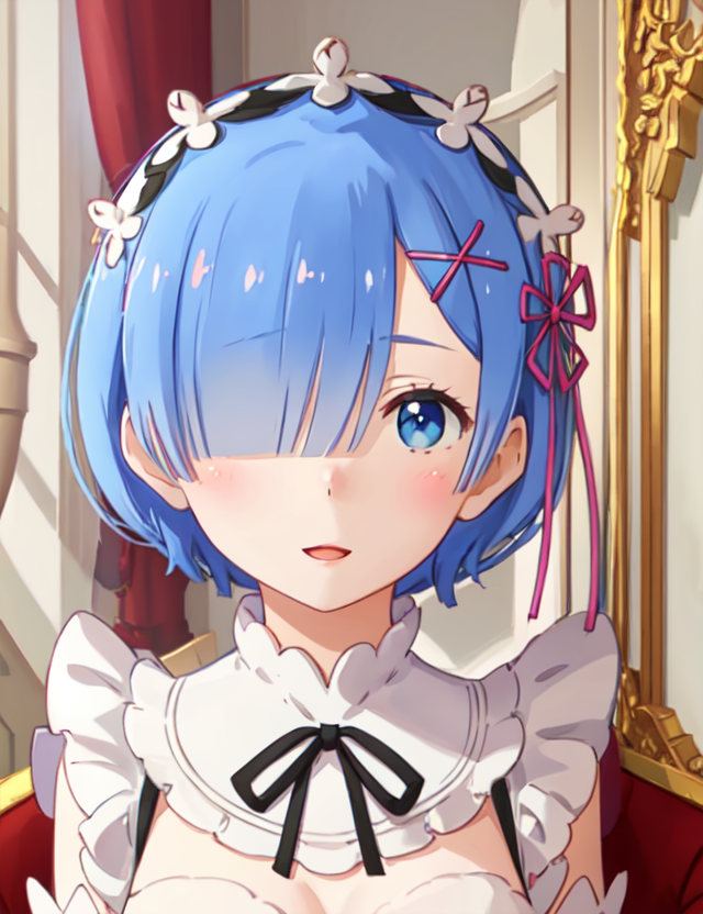 의상을 변경하고 싶으시다면, 단지 'phRem'과 원하시는 의상에 해당하는 프롬프트만 추가하시면 됩니다 (사용 중인 ckpt 파일에 해당 의상이 포함되어 있어야 함). 의상 변경 시 캐릭터의 특징이 사라지는 것 같다면, blue hair, blue eyes, short hair, maid, hair ornament, hair over one eye, x hair ornament, hair ribbon, pink ribbon 등으로 특징을 강화할 수 있습니다.