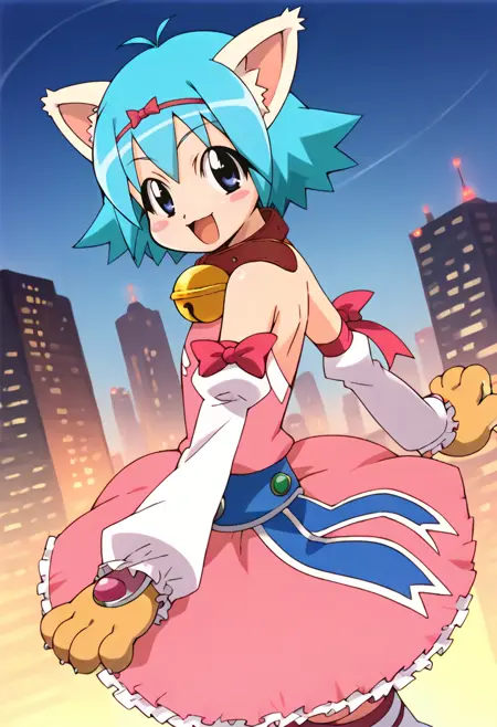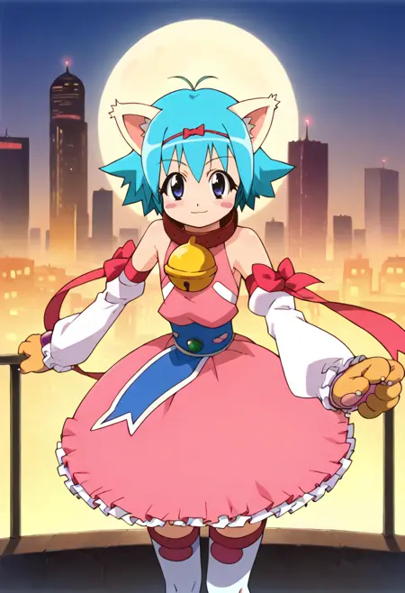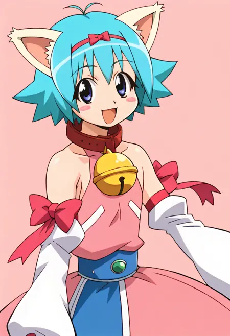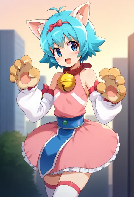 - 粉色连衣裙,手套,动物爪子,丝带,露肩,脱袖,衣领,小铃铛,颈铃,过膝袜,