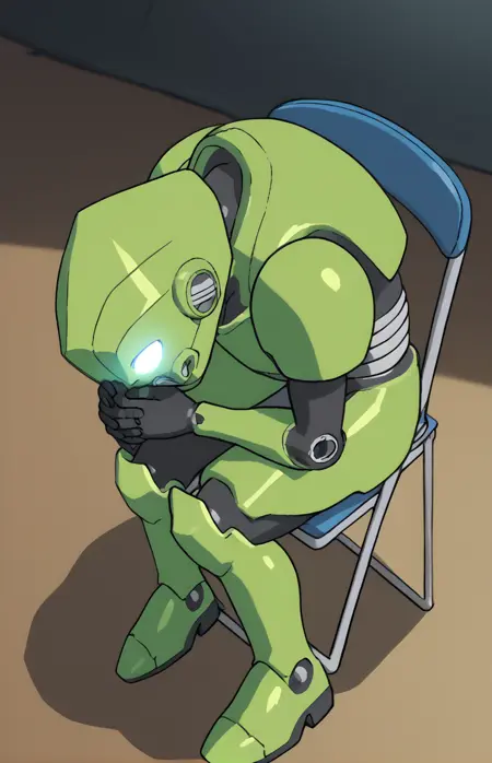 jevin, mech suit, glowing eyes, robot, twink, lime armor