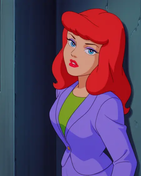 DaphneBlake、赤い唇、赤い髪、青い目、スカート、ジャケット