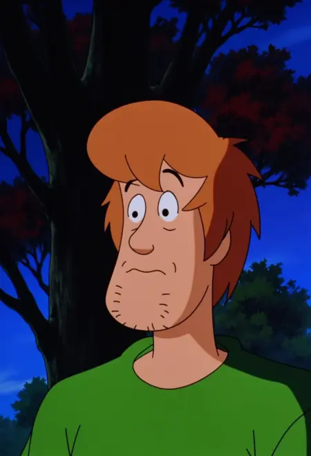 Shaggyrogers, chin stubble, green shirt, brown hair