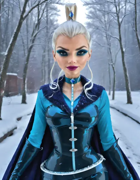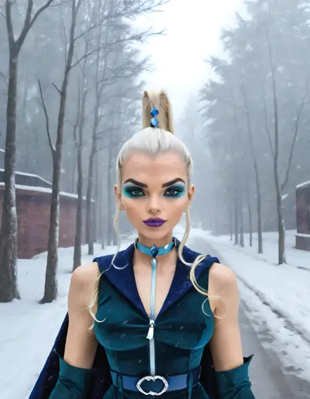 Triggerwords: Icy, 1GIRL, LONG HAIR, LOOKING AT VIEWER BLUE EYES, PONYTAIL, white hair, CHOKER, MAKEUP,LIPSTICK, EYESHADOW BLUE CHOKER