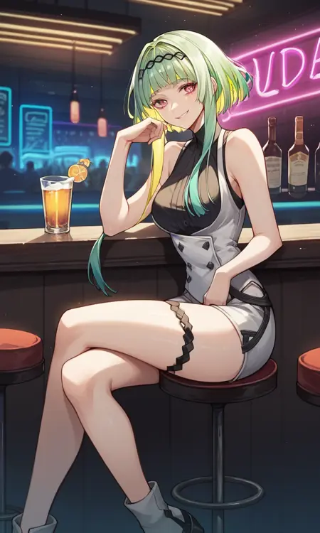 Ringo, short hair with long locks, jacket, multicolored hair, green hair, shorts, gloves, hairband