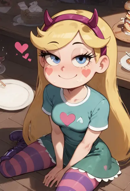 プロンプトアクティベーター:1girl, star butterfly, \(Star vs. the Forces of Evil\),(ultra HD quality details), blonde hair, long hair, very long hair, blue eyes, heart, facial mark, eyelashes,