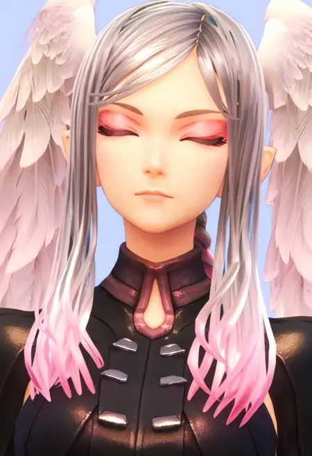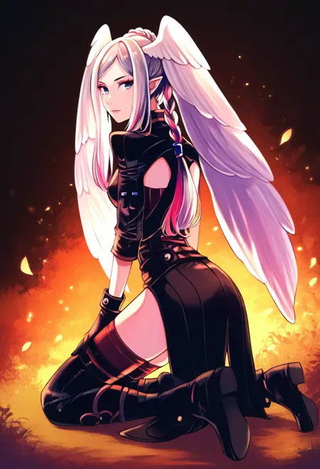 Tags (clothes): black outfit, black thighhighs, black boots, black gloves, pink eyeshadow