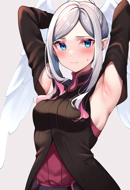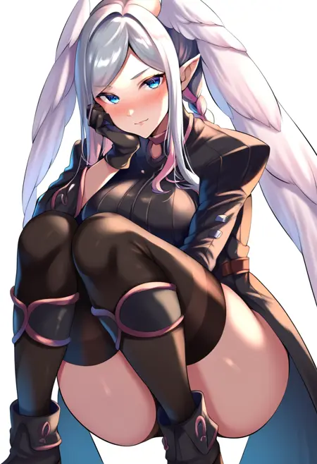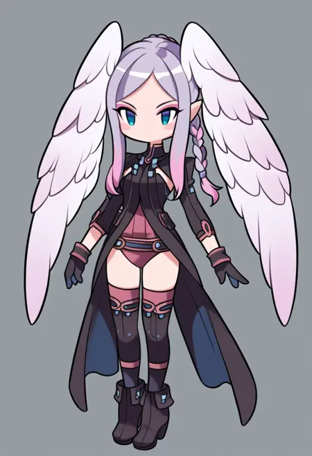 タグ(衣装):黒い服、黒いタイツ、黒いブーツ、黒い手袋、ピンクのアイシャドウ