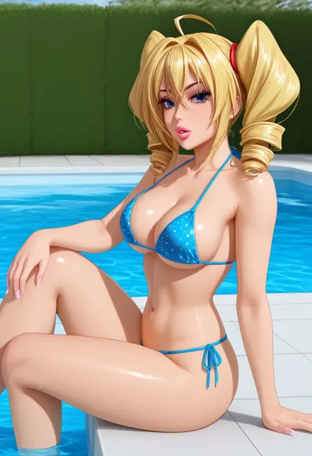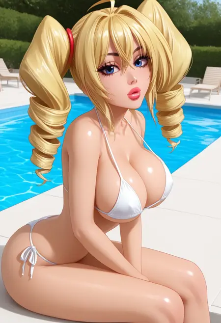 Suggrested tags: ravel phenex, blonde hair, blue eyes, twin drills, medium hair, large breasts, ahoge, shortstack,