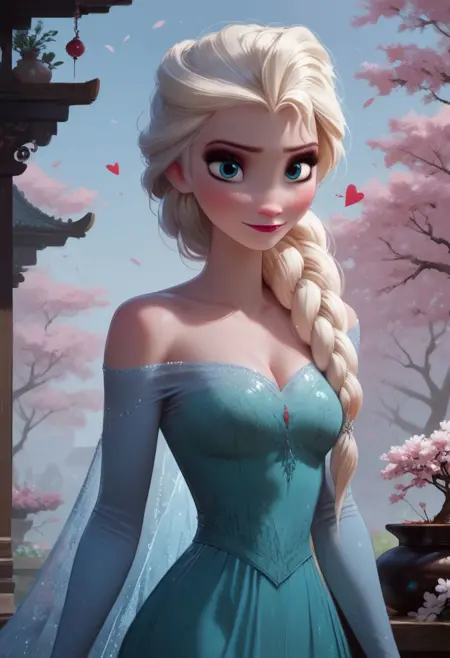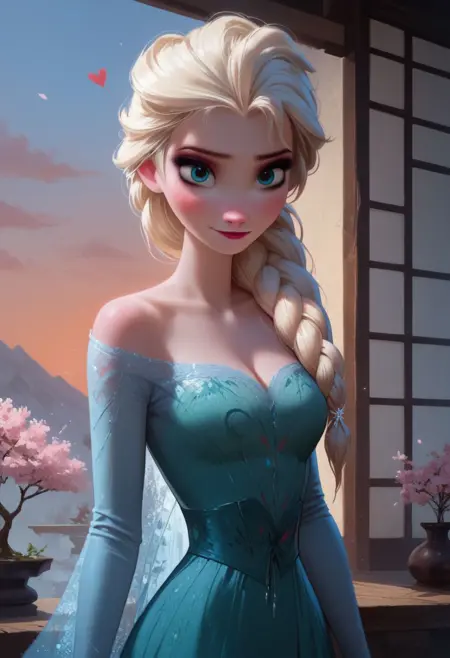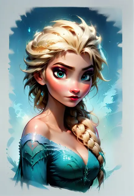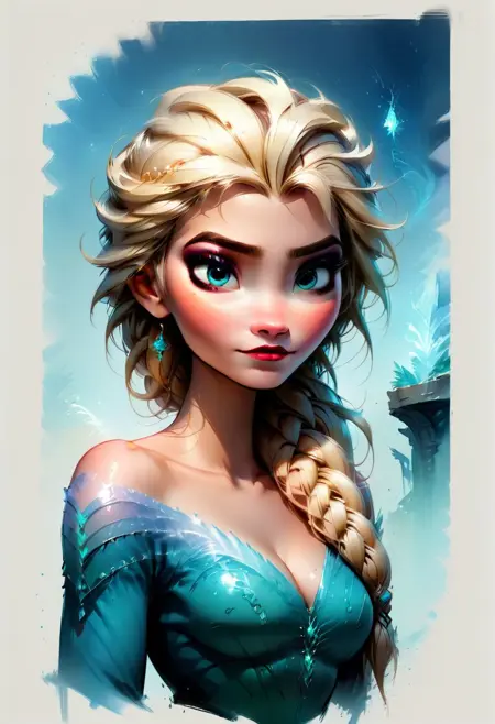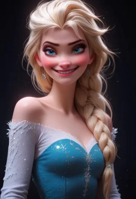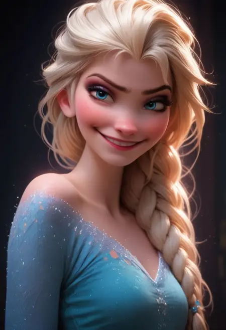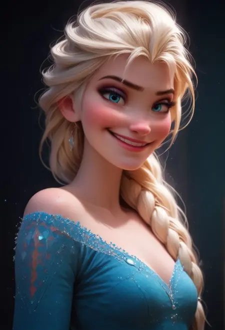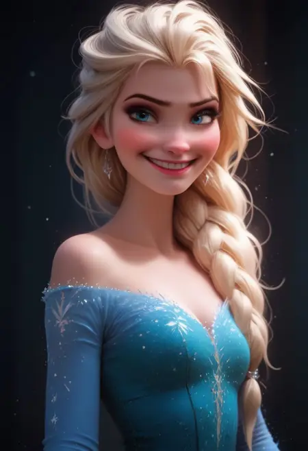 プロンプトアクティベーター:1girl, Elsa, Disney, \(Frozen\)/,(ultra HD quality details), blue eyes, blonde hair, single braid, single braid over shoulder,