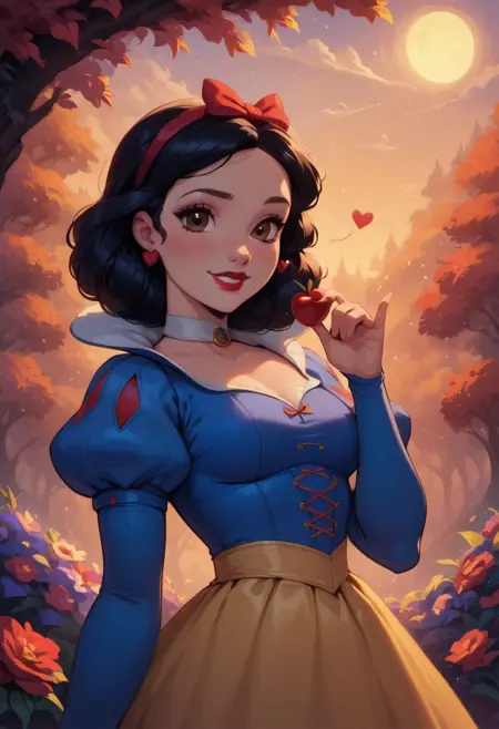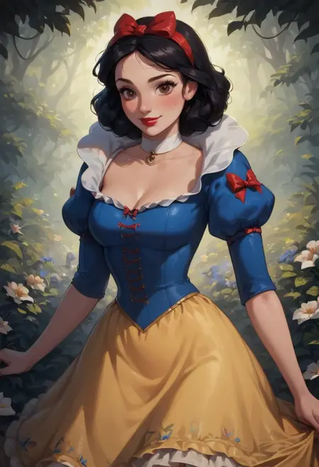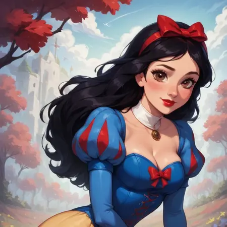 프롬프트 활성화: 1girl, Snowwhite, Disney, \(Snow White and the Seven Dwarfs\)/,(ultra HD quality details), brown eyes, black hair, bobbed hair, pale skin,