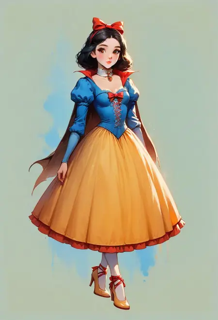 プロンプトアクティベーター:1girl, Snowwhite, Disney, \(Snow White and the Seven Dwarfs\)/,(ultra HD quality details), brown eyes, black hair, bobbed hair, pale skin,