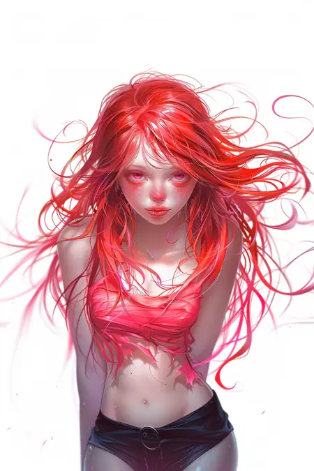 Ketesh,红发,凌乱的头发,粉红色的眼睛