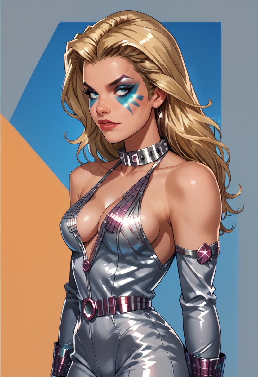 女士们、先生们,准备好随着炫目的 Dazzler LoRA 模型一起摇摆吧!本模型完美捕捉了漫威漫画中迪斯科女神在标志性70年代装扮下的律动精髓!她身着闪亮的银色连体衣,脚踩滚轴溜冰鞋,释放出耀眼的光能,Dazzler 将以复古风情与活力四射的光芒点亮您的艺术创作。无论是想为作品增添一丝迪斯科热潮与闪耀动感的艺术家,这款 LoRA 都能确保 Dazzler 在每幅画作中都呈现出光彩夺目的高质量一致形象。现在就踏上舞池,让 Dazzler 带您的艺术尽情摇摆吧!记住,如果您的作品开始闪闪发光——那只是 Dazzler 在调高灯光而已!