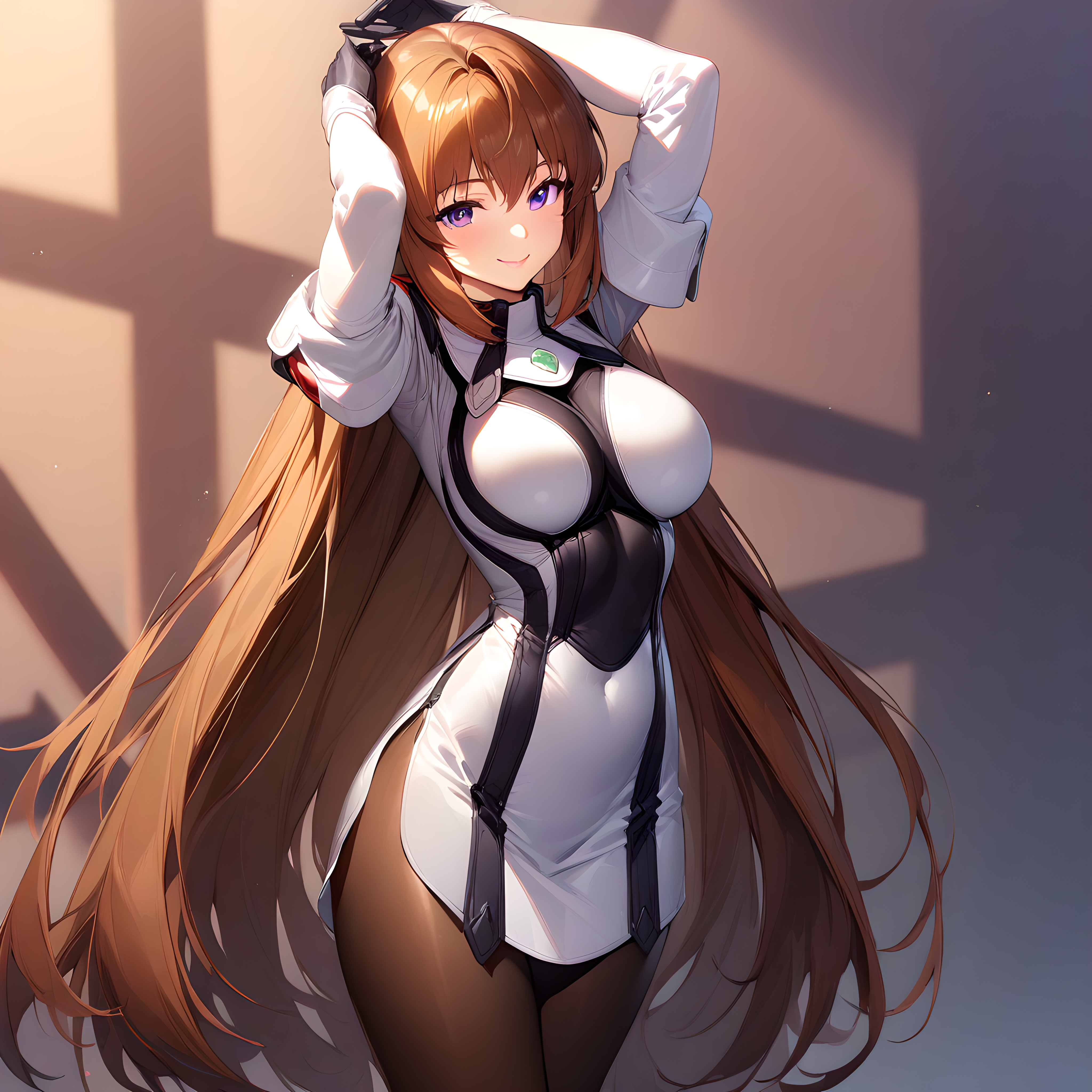 Activation tag for IllustriousXL is "elhaym_van_houten, 1girl, very long hair, orange hair, medium breasts, blue eyes, " and outfit tag is "originaloutfit, pantyhose, gloves, uniform, short dress, dress, black pantyhose, boots, "
