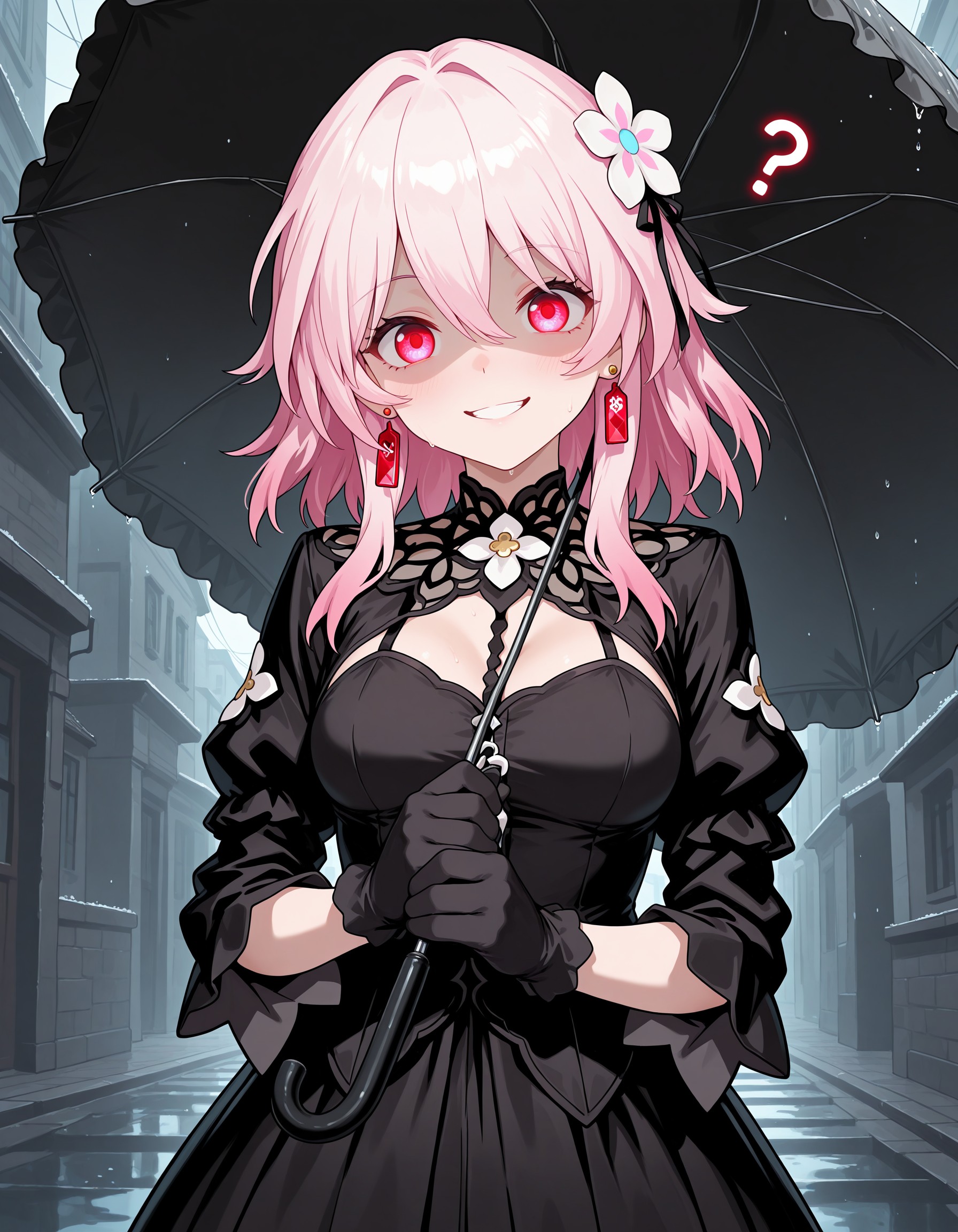 red eyes, earrings, hair flower