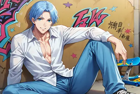 어쨌든, 이것은 애니메이션 Sk8! 두 번째 시즌의 또 다른 주인공인 Langa입니다. 누군가 저에게 이걸 해보라고 해서 시도해봤어요. 왜인지 모르겠지만, 날씬한 체형이어야 하는데 오히려 근육이 지나치게 발달되어 있네요...?