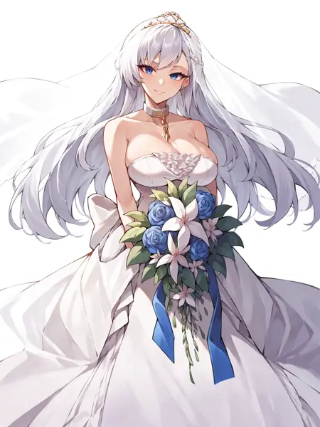 belfast_wedding, 어깨 드러남, 파란 눈, 교회 베일, 코치러, 절개, 칼라, 드레스, 금 체인, 긴 머리카락, 은색 칼라, 은색 머리카락, 스트랩리스 드레스, 티아라, 웨딩 드레스, 흰색 드레스