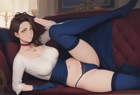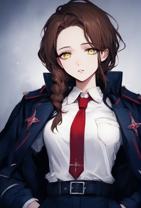 medium hair, brown hair, braid, braid over the shoulder, yellow eyes