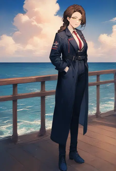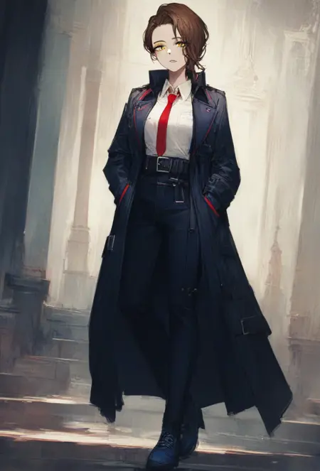 medium hair, brown hair, braid, braid over the shoulder, yellow eyes
