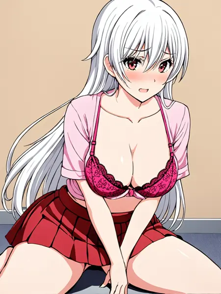 분홍색 드레스, 분홍색 브라, 빨간 치마, 체크무늬 치마,