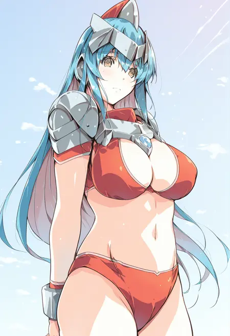 - V1 트리거: ultralady jenisu, bikini armor, blue hair, color timer, mature female, large breasts, skinny, thighhighs, boots,