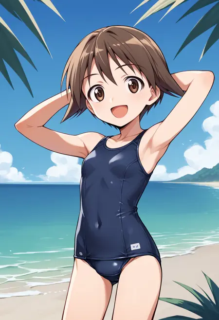 服装提示词:no pants, school uniform, serafuku, swimsuit under clothes, shoes