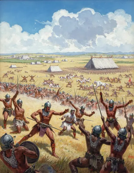 an illustration of a man swinging a rope in the style of rudolph-belarski