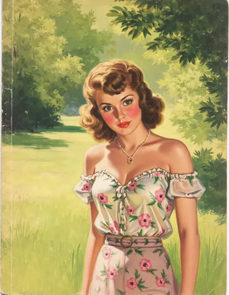 an illustration of a woman with a white shirt and black skirt in the style of rudolph-belarski