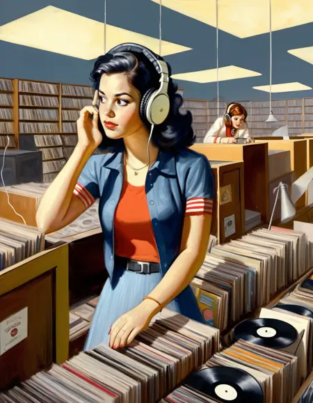 흰 셔츠와 검은 치마를 입은 여성을 루돌프 벨라스키 스타일로 그린 일러스트