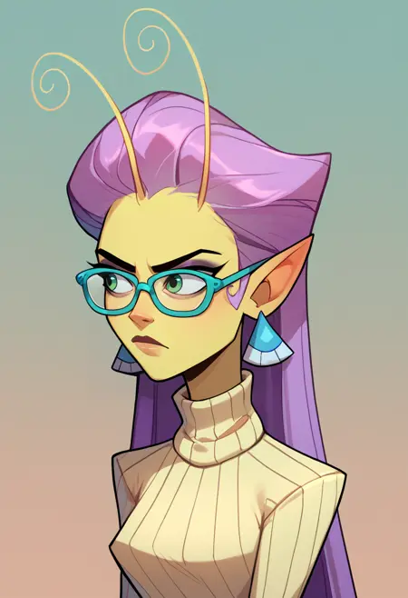 キャラクタータグ: 黄色い肌、尖った耳、アンテナ、化粧