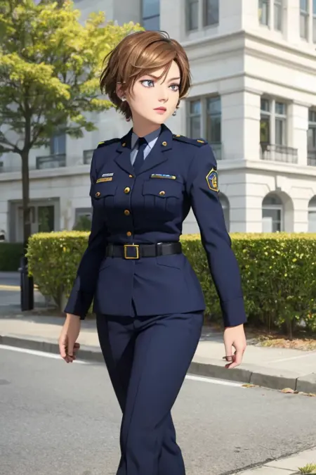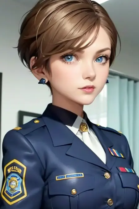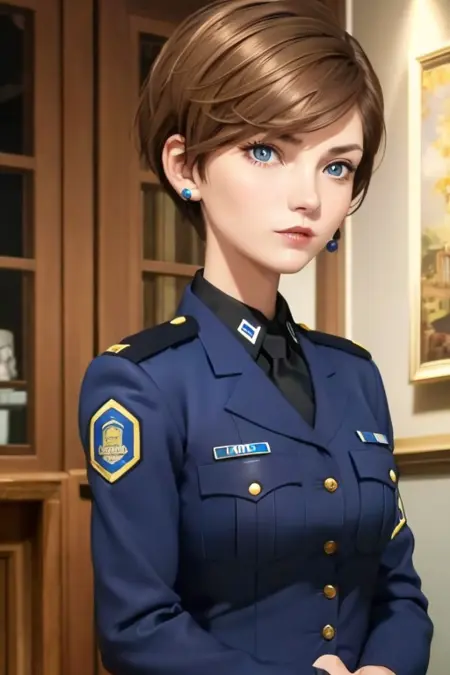 Both version using sxtopaz as trigger word, use short hair, brown hair, pixie cut, blue eyes, earrings, lipstick to form her face, use police uniform to summon her outfit, both using the same tag.