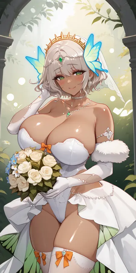 주요 태그: flora, 녹색 눈, 단발, 옅은 갈색 머리, 검은 피부의 여성, 앞머리
