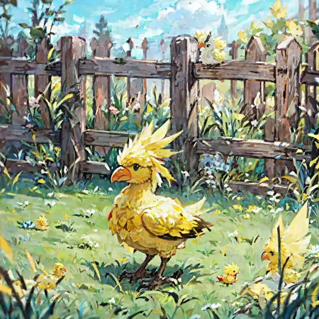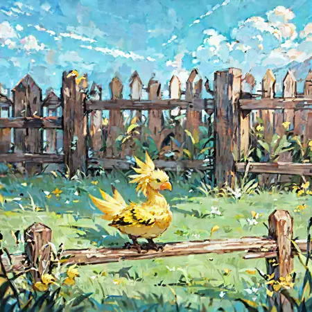 SD 1.5 모델용 아기 초코보 LoRA. Anime Pastel Dream에서 학습되었습니다. Pony XL 버전은 여기에서 사용할 수 있습니다: