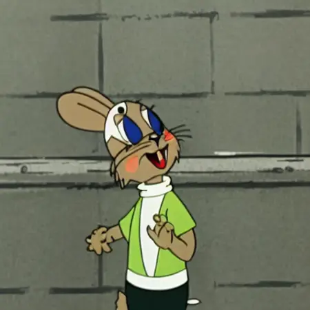 モデルは、ソビエトアニメ「おい、待て!」(主要16話分)から撮影した40枚のウサギの画像を512×512解像度で500エポック分、学習させました。