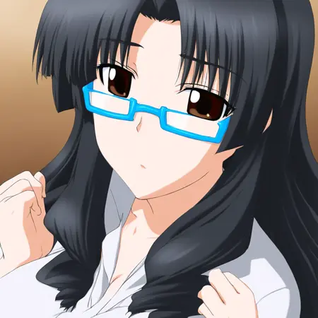 使用神乐千鹤,黑发,棕眼,长发,分刘海,蓝色镜框眼镜,下框眼镜,眼镜,大胸部,