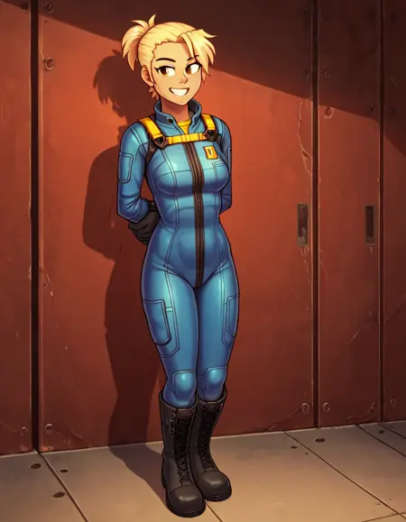 《辐射:新维加斯》中的莎拉。触发词为“Sarahfnv”,“bodysuit,uniform”表示她的默认服装,“short ponytail”表示她的发型。