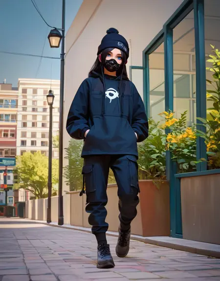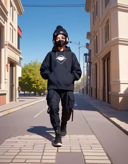 「テックウェア」衣装を着た人の画像でLoRAを学習しました。